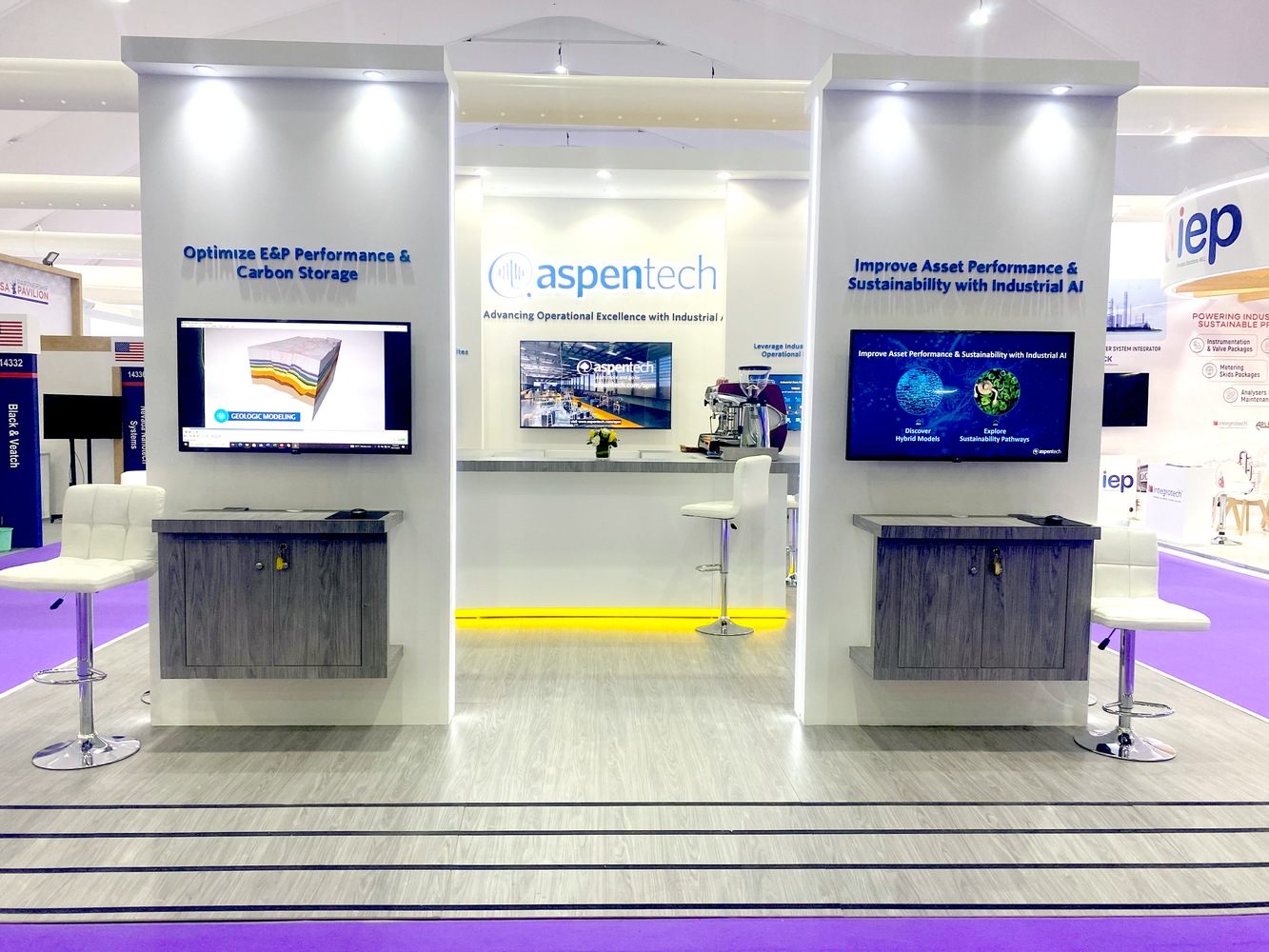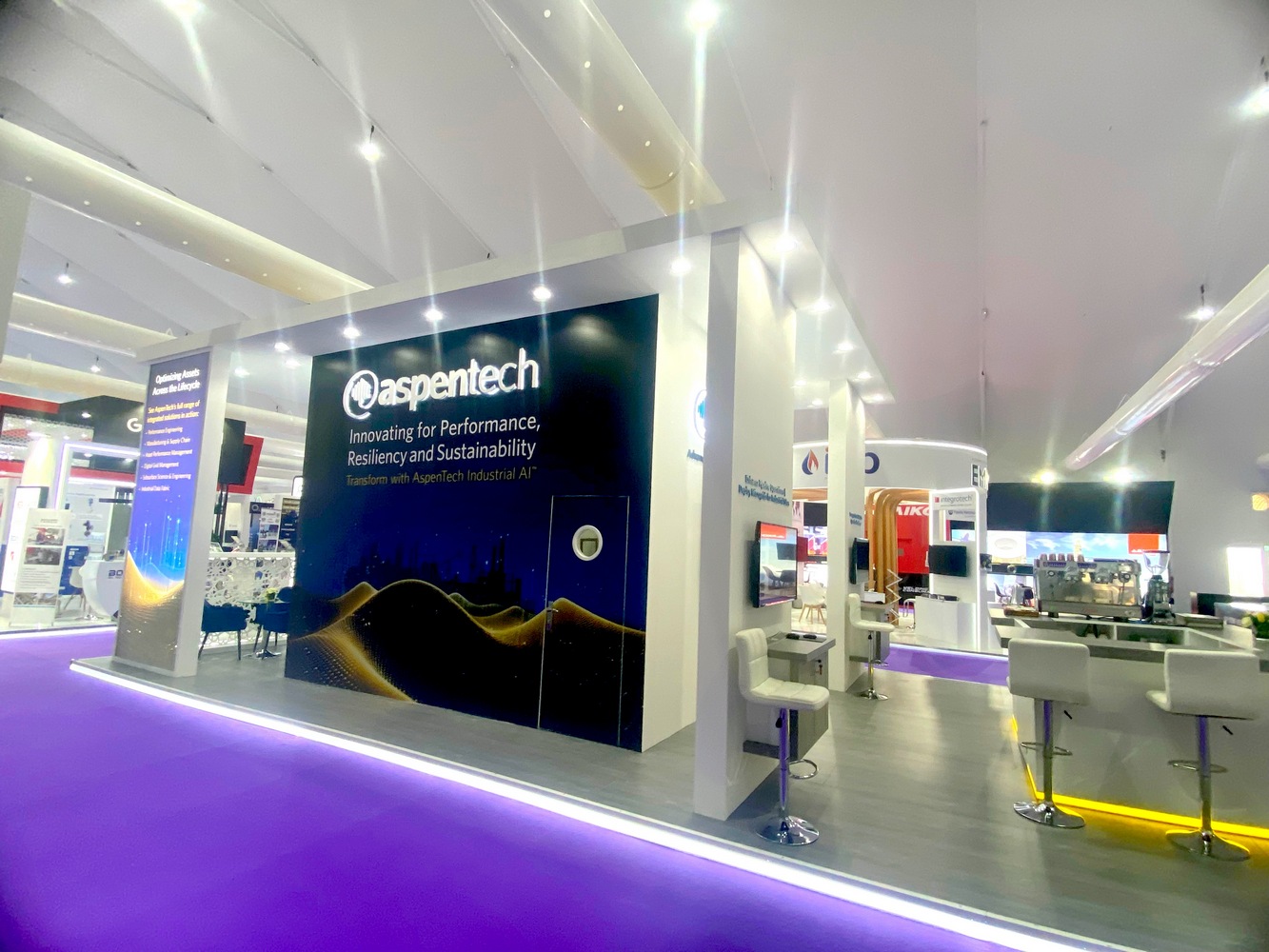 The FRESHEXPO team developed a design project and constructed a unique exhibition booth 90.00 sq. m for the ASPENTECH (a software development and services company for the manufacturing industry) at the at the Middle East Oil & Gas Industry Exhibition and Conference ADIPEC 2024 held at the ADNEC (Abu Dhabi National Exhibitions Center) in Abu Dhabi (United Arab Emirates) on November 4 - 7.2024