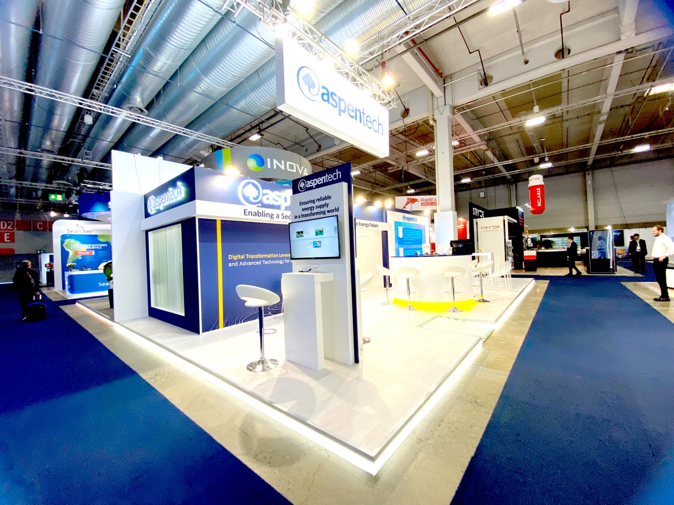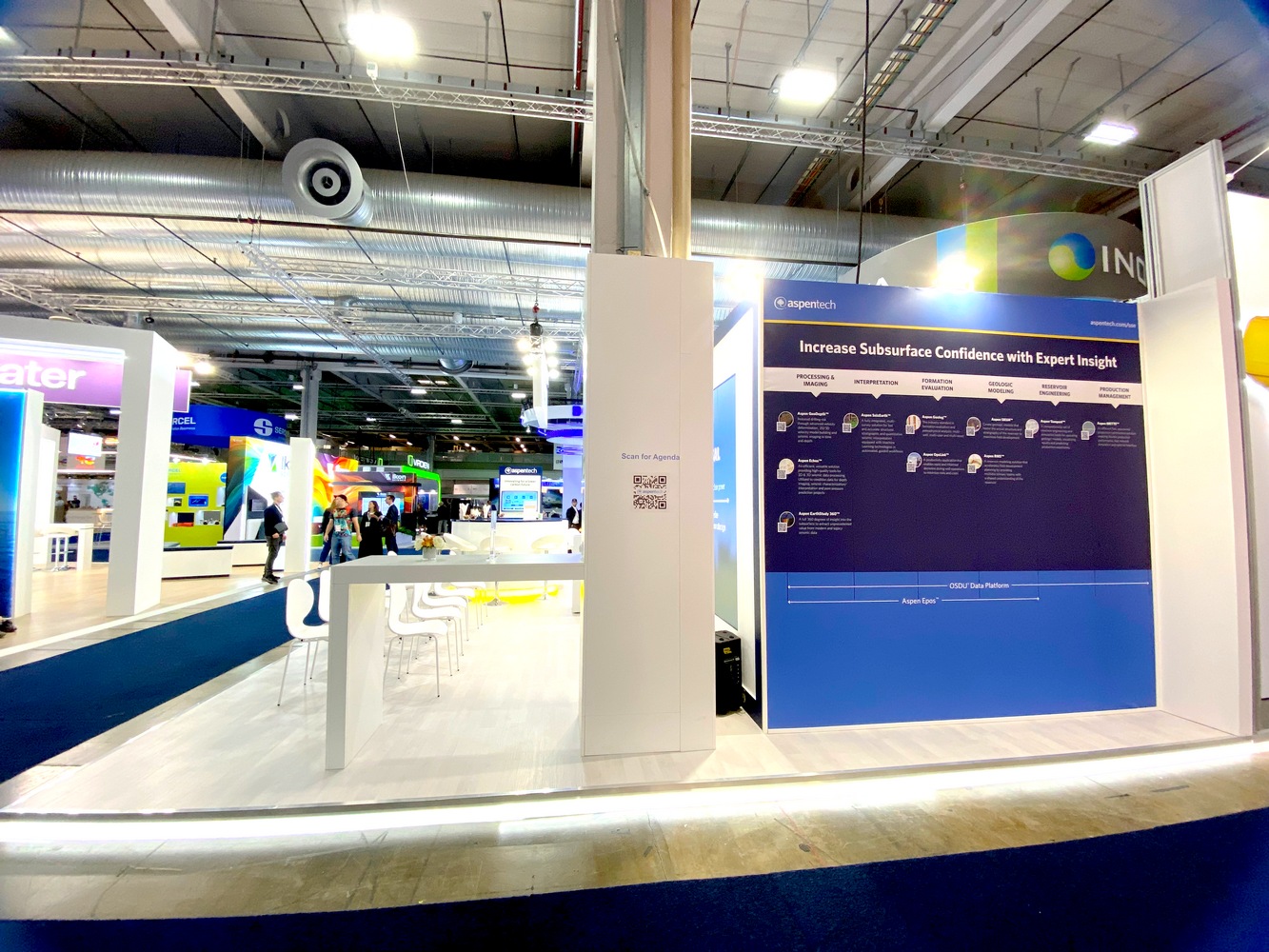 The FRESHEXPO team developed a design project and constructed a unique exhibition booth 84.00 sq. m for the ASPENTECH (a software development and services company for the manufacturing industry) at the EAGE Annual Conference & Exhibition 2024 held at the NOVA Spektrum (Exhibitions Center) in Oslo (Norway) on June 10 - 13.2024