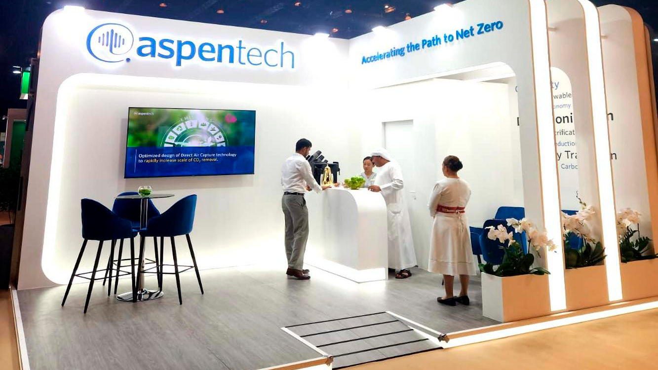 The FRESHEXPO team developed a design project and constructed a unique exhibition booth 24.00 sq. m for the ASPENTECH (a software development and services company for the manufacturing industry) at the International Exhibition Climate Action INNOVATION ZONE COP28, held at the Madinat Jumeirah conference Сenter in Dubai (United Arab Emirates (UAE)) on December 4-8.2023