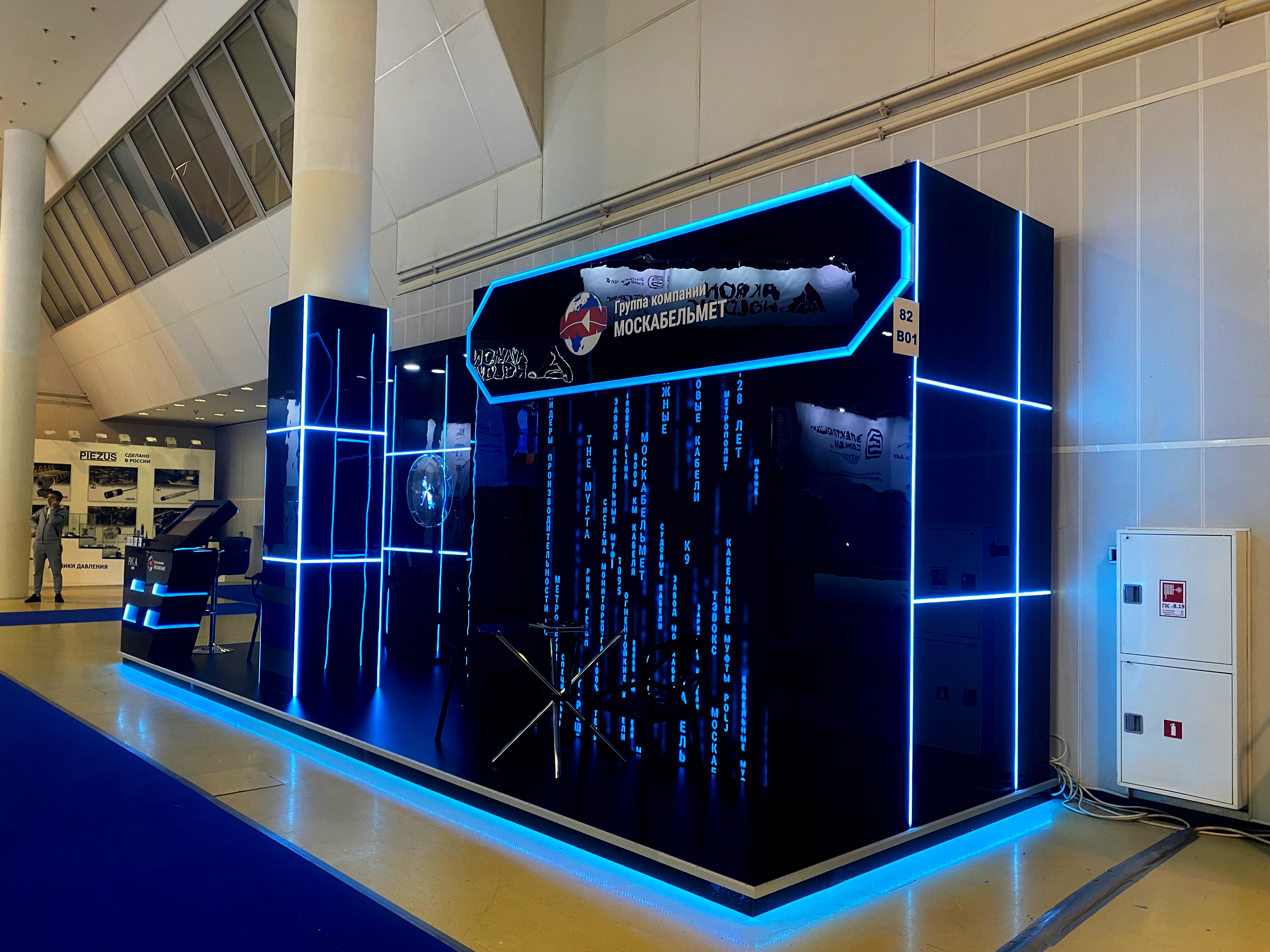 The FRESHEXPO team developed a design project and constructed a unique exhibition booth 19.00 sq. m for the GC MOSKABELMET (one of the leaders in cable & wire production in Russia) at the 22nd International Exhibition of Equipment and Technologies for the Oil & Gas Complex NEFTEGAZ 2023 held at the EXPOCENTRE Fairgrounds (International Exhibition Centre) in Moscow (Russia) on April 24-27.2023