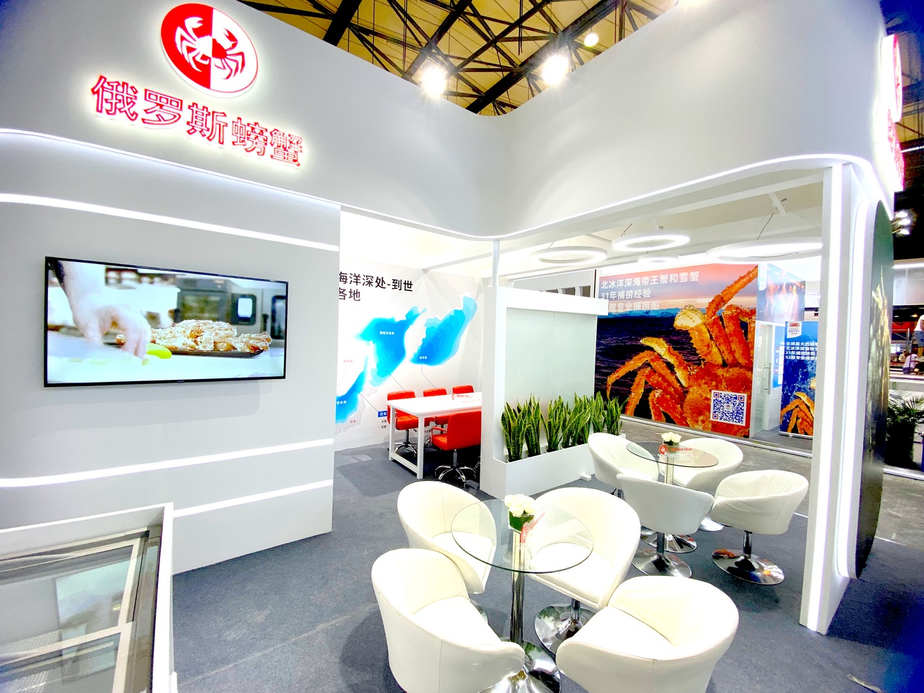 Для заказчика компании ООО «Русский Краб» (российская крабодобывающая компания), сотрудники «ФРЕШЭКСПО» разработали эксклюзивный дизайн-проект и осуществили качественную застройку выставочного стенда площадью 36.00 кв. м на Международной выставке рыболовства и морепродуктов «World Seafood Shanghai 2024» в период с 28 по 30 августа 2024 года в г. Шанхай (КНР), ВЦ «Shanghai New International Expo Centre».